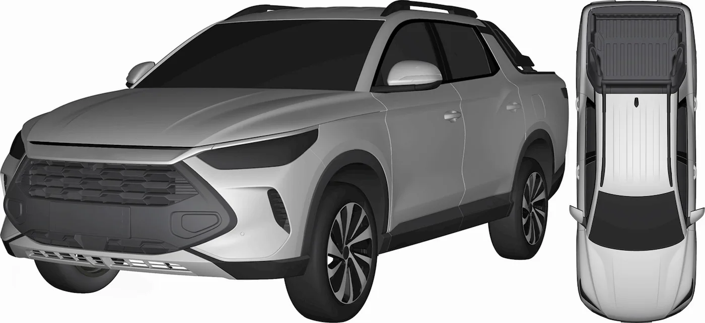The new patent designs reveal it will have a unibody design, typical of smaller crossovers, suggesting it will sit below the Shark in the lineup. According to CarNewsChina, BYD’s new pickup will be the entry-level model for its Shark family.