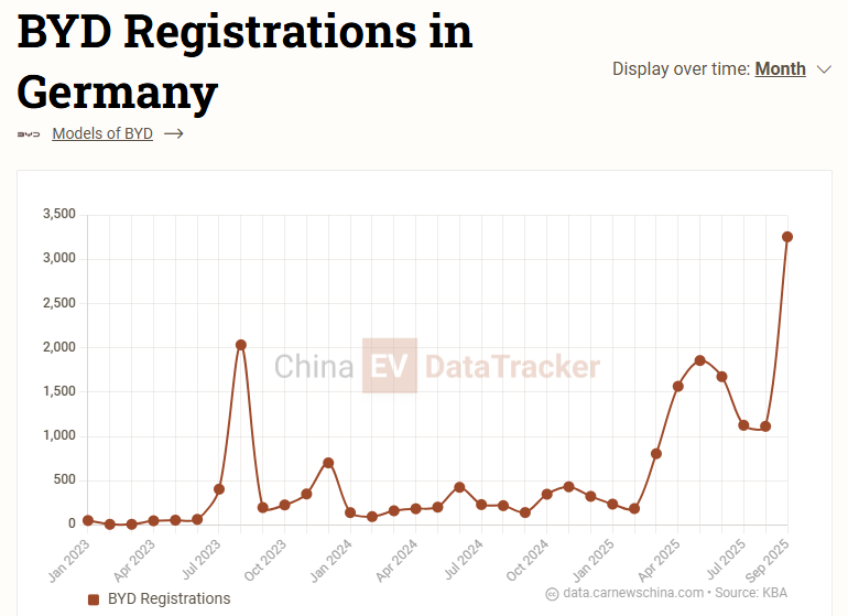 In 2025, so far (January-September), BYD sold 11,818 cars in the largest EU auto market, up 560% from the same period in 2024, according to registration data from the KBA, the Federal Motor Authority. BYD entered the German market in October 2022. BYD ceased production of vehicles equipped only with internal combustion engines (ICE) in March 2022.