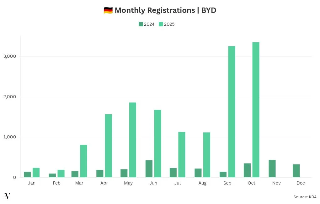 Between January 1 and October 31, BYD has registered 15,171 vehicles in Europe’s largest automotive market.