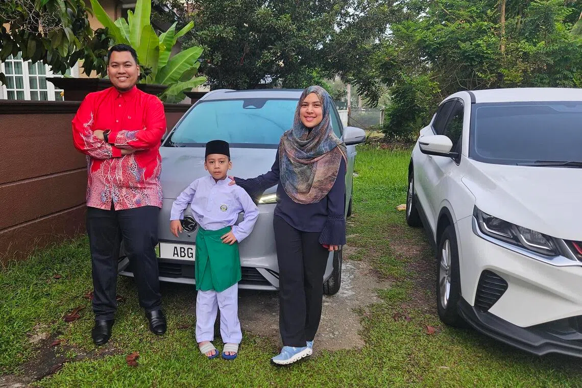 Civil servant Abang Abdul Rasyid Abang Yusop (left) now prefers the Proton e.MAS 7 EV to his regular family car.