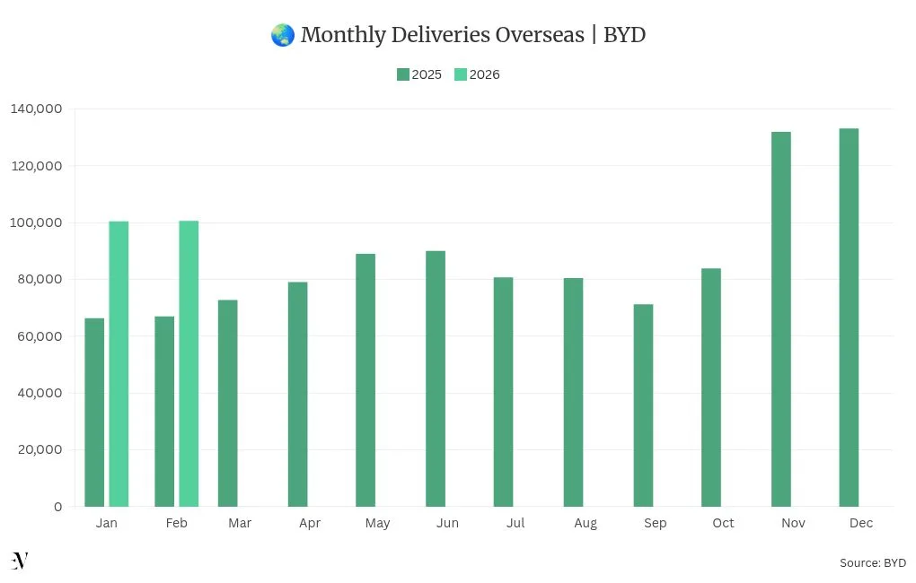Chery announced a 2026 sales target of 3.2 million units, approximately 14% above last year. The company sold more than 2.8 million passenger cars in 2025, of which over 900,000 were new energy vehicles.