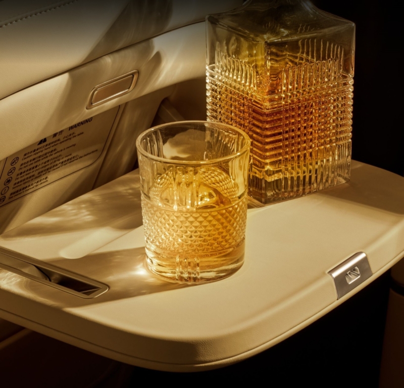 A 9.2L refrigerator embedded under the center console with a temperature range of -18°C to 50°C is available on the AWD as a standard configuration. Foldable small tables behind the front seats with a 26 mm thickness, 20 kg load capacity, and 0.077㎡ area are only available on the top-of-the-line trim.