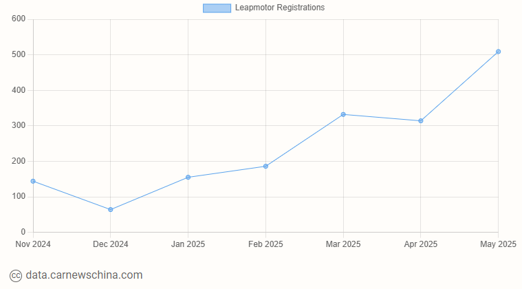 Stellantis-backed Leapmotor registered 509 vehicles, up 62.1% from 314 units in April.