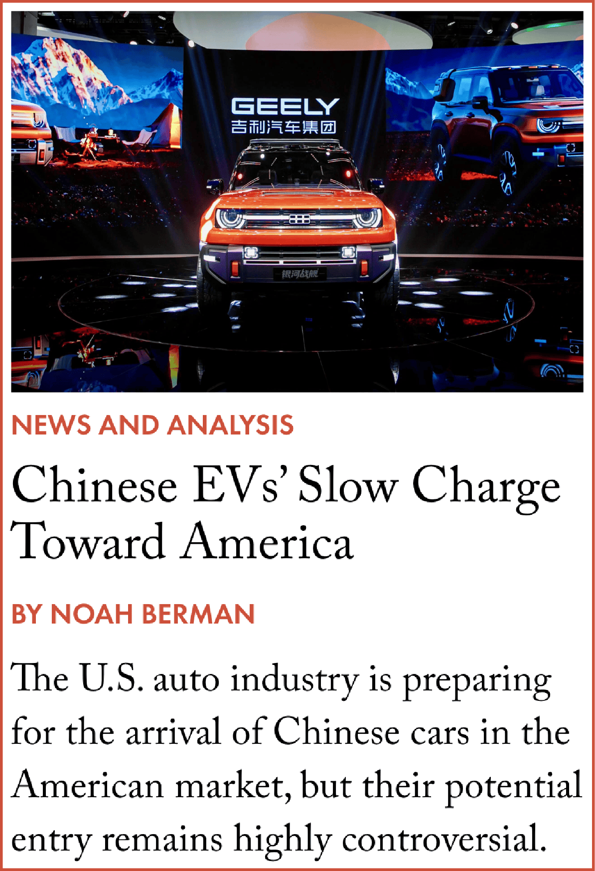 “North America is on the table,” says Bill Russo, chief executive of Automobility, a Shanghai-based automotive advisory firm. “Governments recognize that Chinese carmakers will bring jobs and industrial relevance. There could be a bidding war, and if I’m China, I want that.”