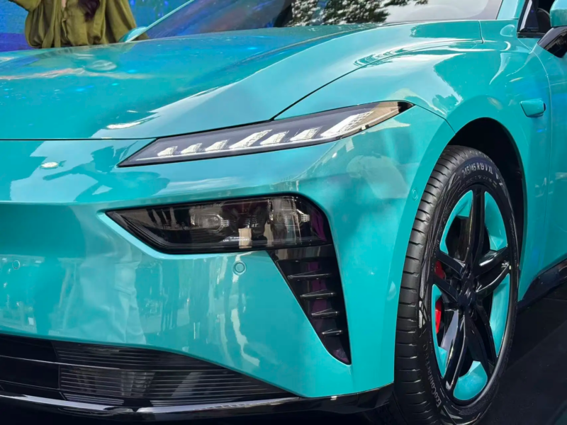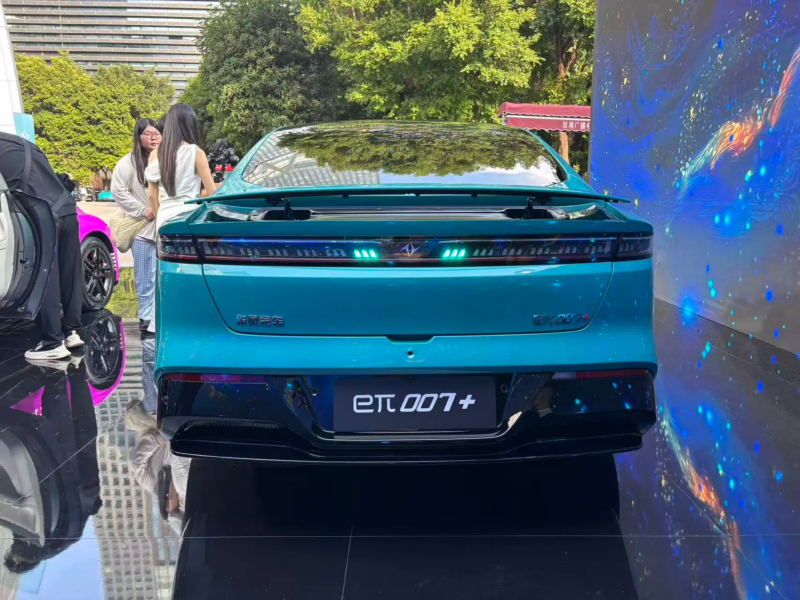 From the side, the vehicle boasts fluid lines, flush door handles, and body-colored five-spoke wheels. The standard LiDAR system is complemented by a “little blue light” indicator for assisted driving. In terms of dimensions, the eπ007+ measures 4880mm in length, 1915mm in width, and 1476mm in height, with a wheelbase of 2915mm.