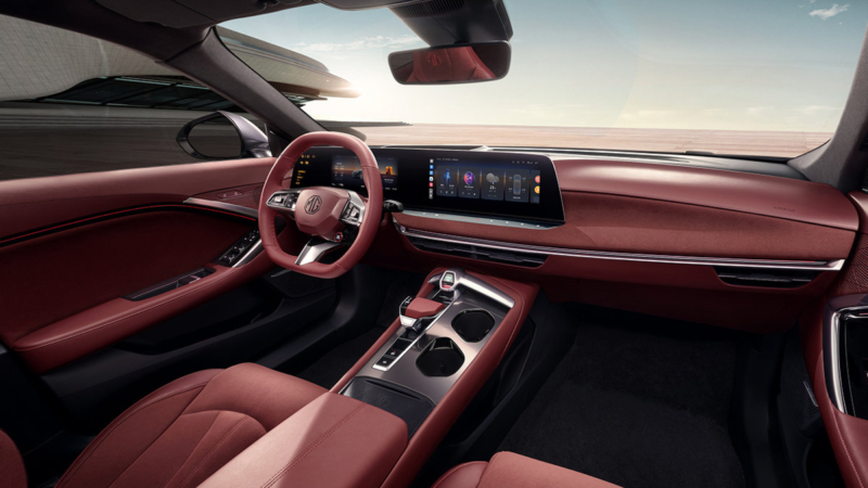 The new model adopts five-spoke rims, semi-hidden door handles, and a roof-mounted LiDAR. From the back, the car has a large tailgate. It seems that the electric MG7 will adopt an active spoiler and a single taillight strip. The car’s interior has five seats with sporty front chairs with integrated headrests and pronounced shoulder support.