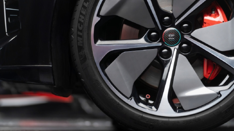 The ET5T Tron Limited Edition features a deep space black exterior with Tron Limited Edition-themed decals. Standard equipment includes the Moon exterior theme package, roof rails, and 20-inch five-spoke wind-speed wheels with orange brake callipers. The edition also consists of the same chassis as Nio’s Champion Edition, with upgraded front and rear anti-roll bars, increased torsional rigidity by 6%, and a body roll gradient below 3 degrees per g. The chassis supports a dedicated sport-oriented software calibration and a new EP Mode for expanded driving scenarios and custom settings.