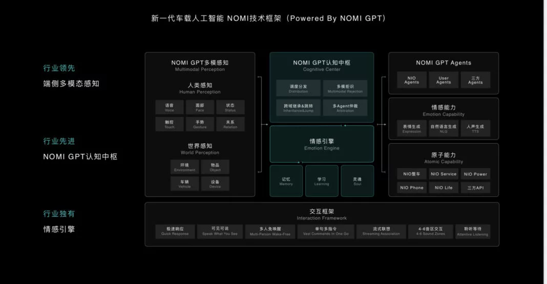 Nomi’s upgrade is a new technical architecture which Nio claims will bring an unprecedented intelligent experience to Nio users. All Nio cars will gain the upgrade through an OTA which updates the Chinese operating system to Banyan 2.4.5. Nio has tailored a large cloud based multi-modal model for Nomi. This integrates self-developed multi-modal perception, a cognitive center, emotion engine, and multi-expert agent.
