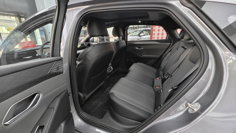 Materials are consistently high quality for the price point. Leather and soft-touch finishes extend across seats, door panels, and trim surfaces. Front seats offer generous padding and contouring, delivering a refined seating experience. Rear seating is compact but functional. The flat floor allows middle passengers to position their feet naturally, while headroom and legroom are sufficient for average-size adults.
