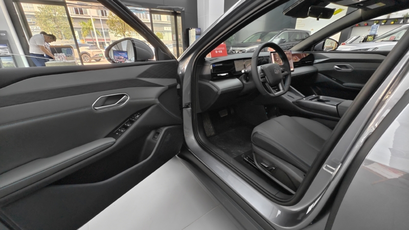 The test car, in top trim, reflects BYD’s Dynasty series design language with thoughtful updates. Two large central displays dominate the dashboard, augmented by a heads-up display projecting key driving information directly in the driver’s line of sight. The steering wheel is newly styled, with ergonomic control buttons that align with the Qin L series’ approach.