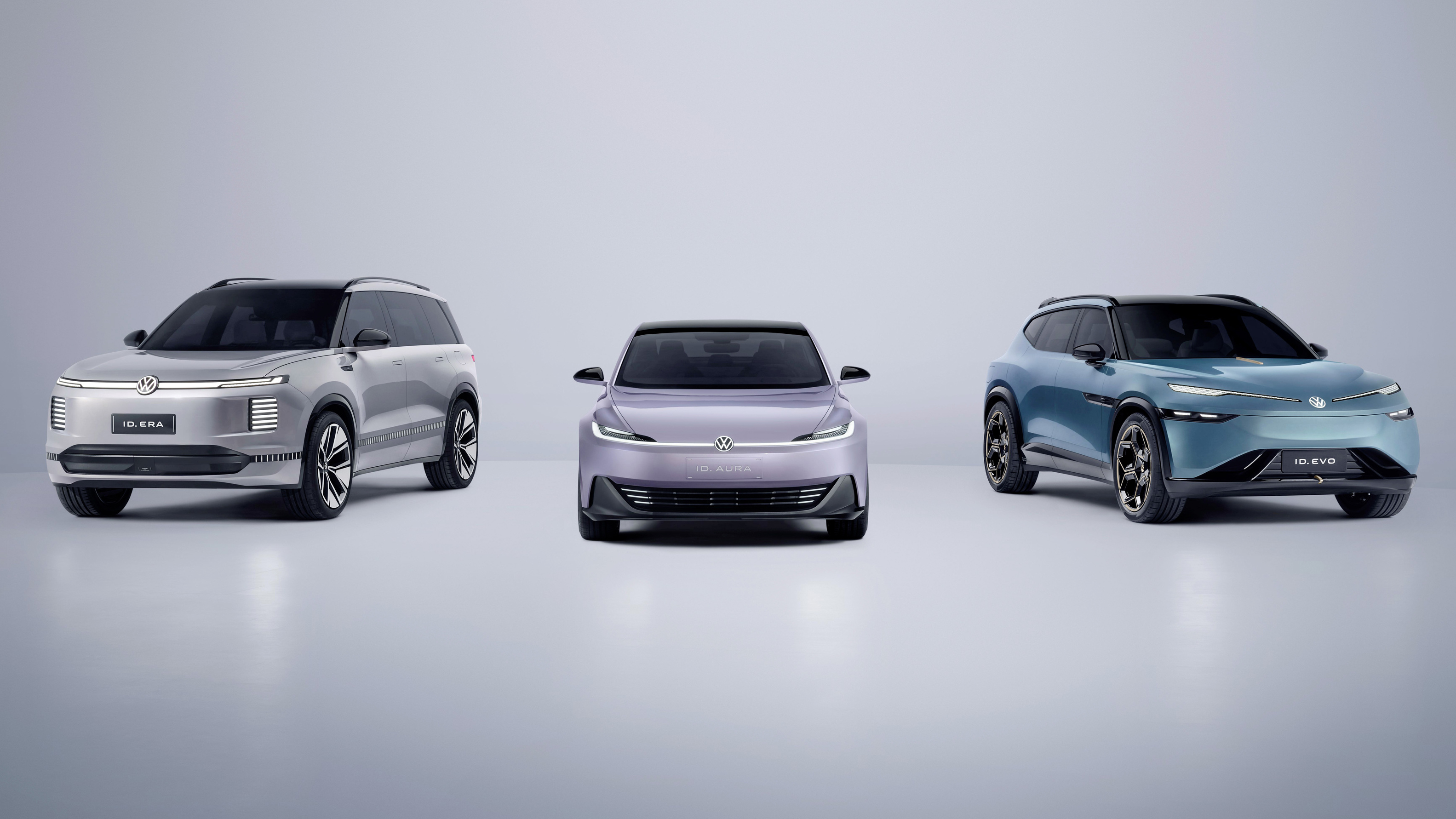 The ID. Aura sedan and ID. Evo SUV are fully electric, while the ID. Era three-row SUV has a range-extender powertrain