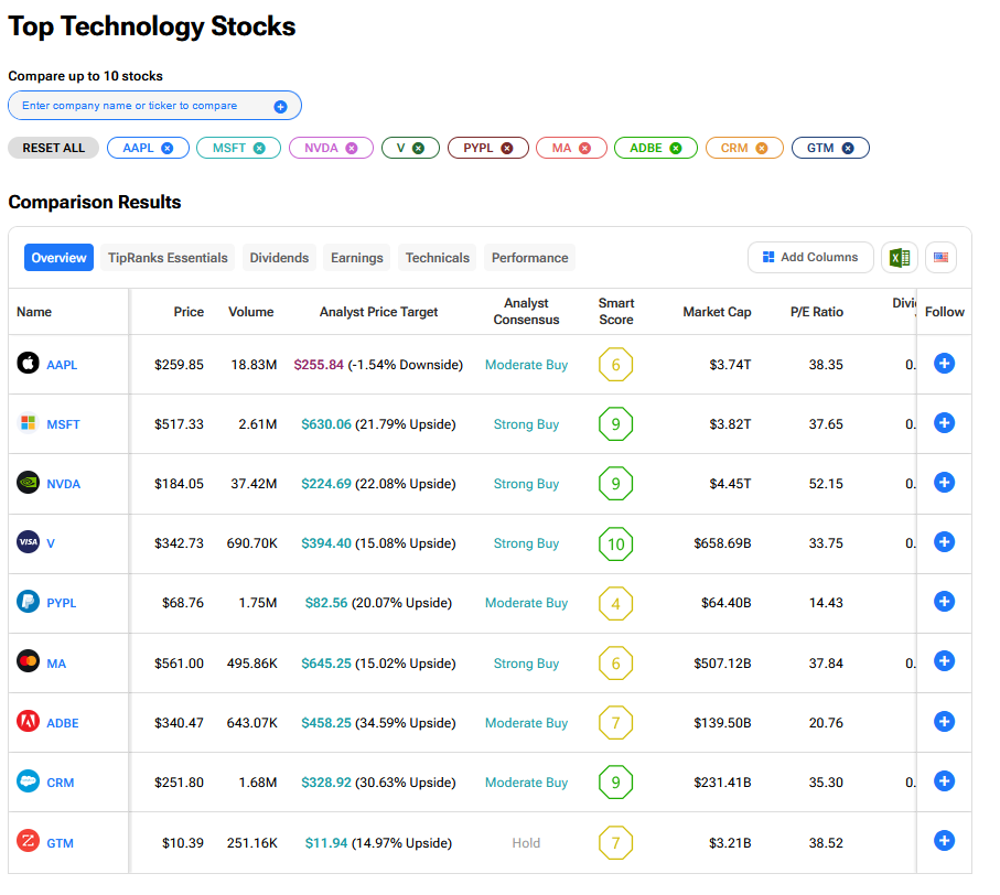 We have rounded up the best tech stocks to buy now using our TipRanks comparison tool.