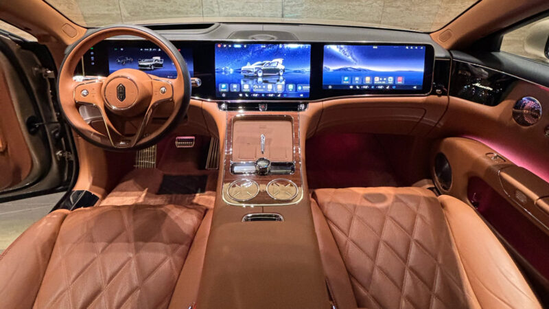The S800’s cabin adopts a 15.6-inch touchscreen complemented by an even larger 16-inch front passenger monitor. The rear passenger windows of the Maextro S800 could be dimmed with a swipe of a hand. Another highlight is a 43-speaker sound system for 2,930 W.