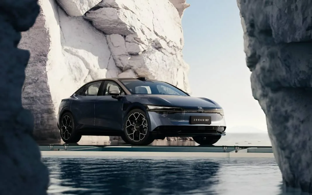 The Zeekr 007 sedan has dimensions of 4865/1900/1448 mm with a wheelbase of 2,928 mm. The entry-level 007 has a 75 kWh LFP battery for up to 688 km under CLTC conditions. The second battery option is a 100 kWh ternary NMC pack for 870 km. The RWD variant of the 007 produces 320 kW (416 hp), while the 4WD version has a peak power output of 475 kW (637 hp). The 007 costs 209,900 – 299,900 yuan (30,130 – 43,050 USD).