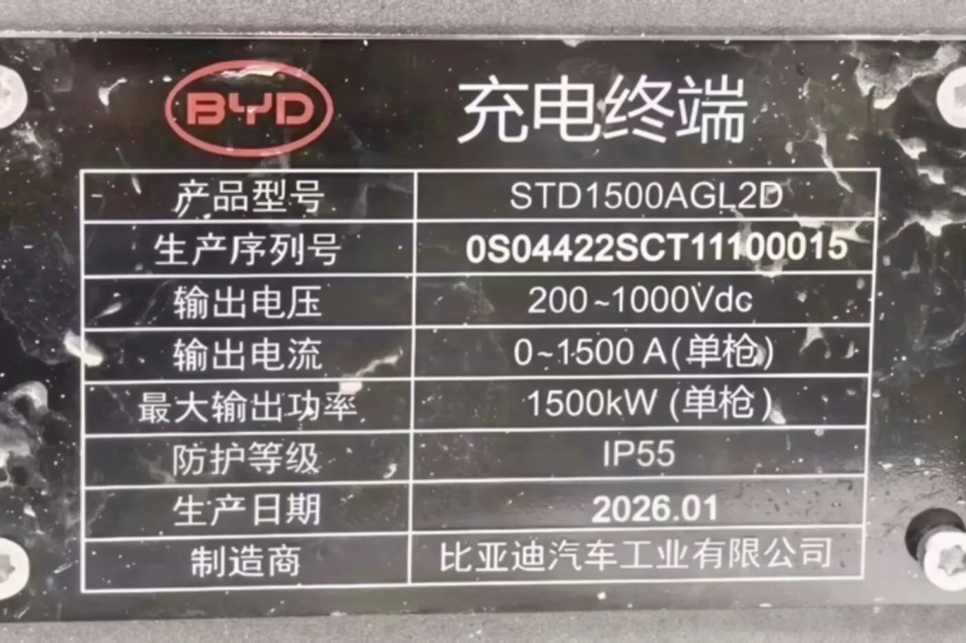 Reports in forums and articles refer to details from an alleged type plate said to belong to a second-generation “Flash Charging” charging station. Some sources claim charging power of up to 1,500 kW and a charging current of 1,500 amperes, while others cite “only” 1,360 kW. Either way, this would represent an increase over the 1,000 kW that BYD announced for the first generation in March 2025.